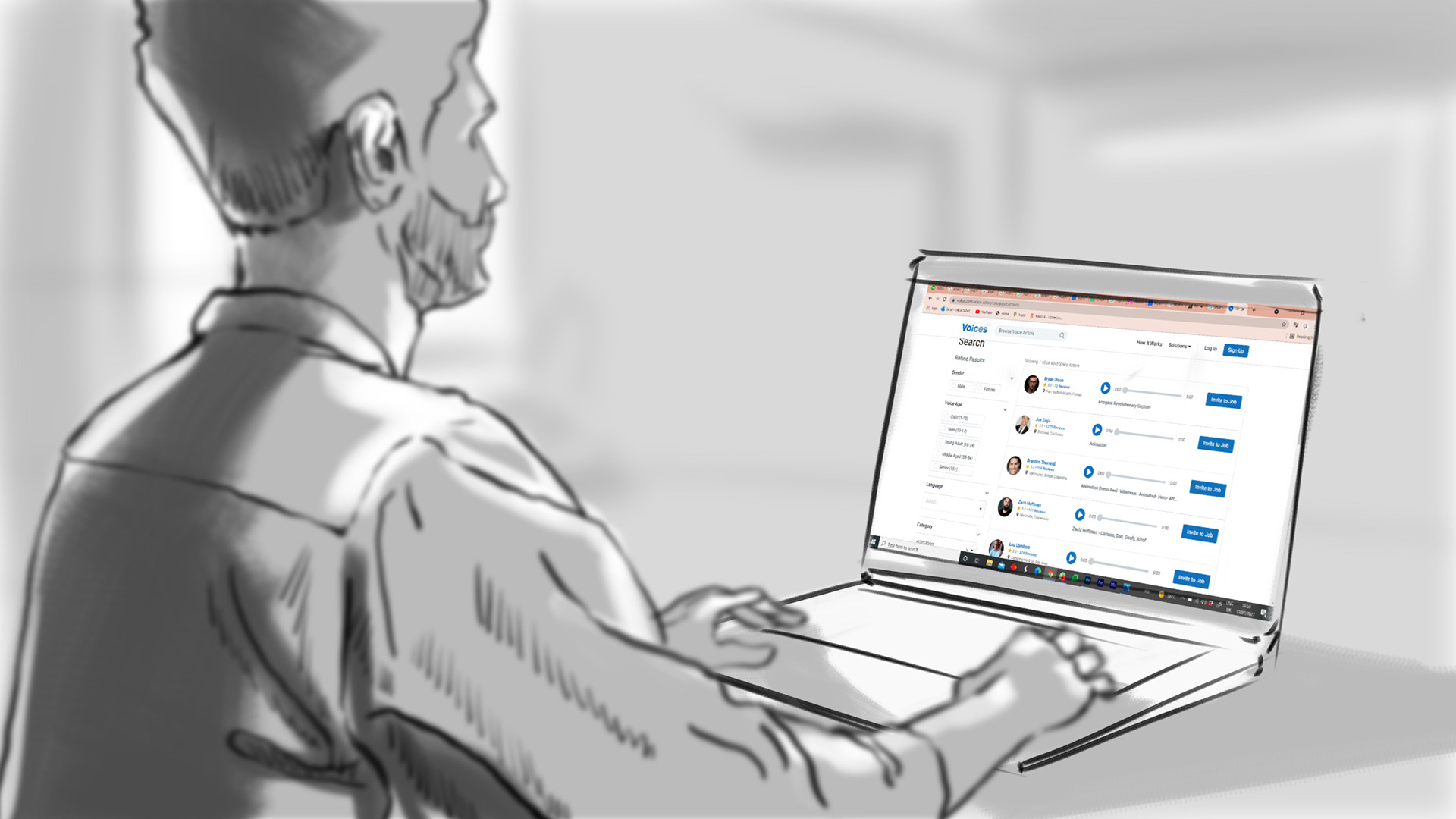 Storyboards for Voices commercial.